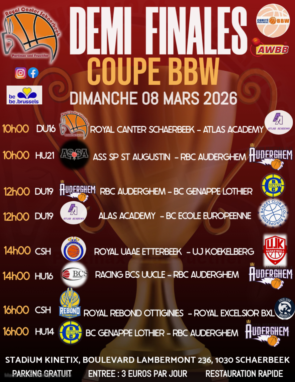 Demi-Finales de la Coupe du Bruxelles-Brabant Wallon : Dimanche 08 Mars 2026 🔥 27 février 2026Evènements