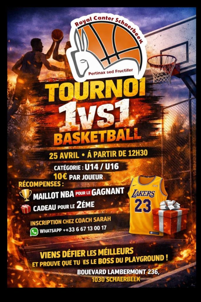 Le Dimanche 25 Avril après midi, le Royal Canter Schaerbeek organise un Tournoi 1contre1 en U14-U16 🔥 2 avril 2026Evènements Les frais de participation aideront l'équipe U14 à financer le grand tournoi à Paris. Inscription obligatoire
