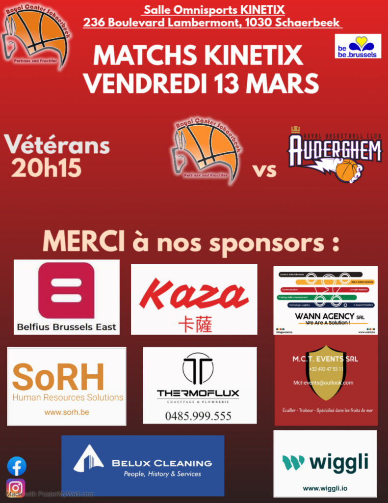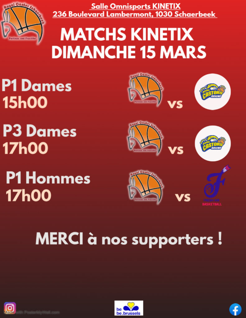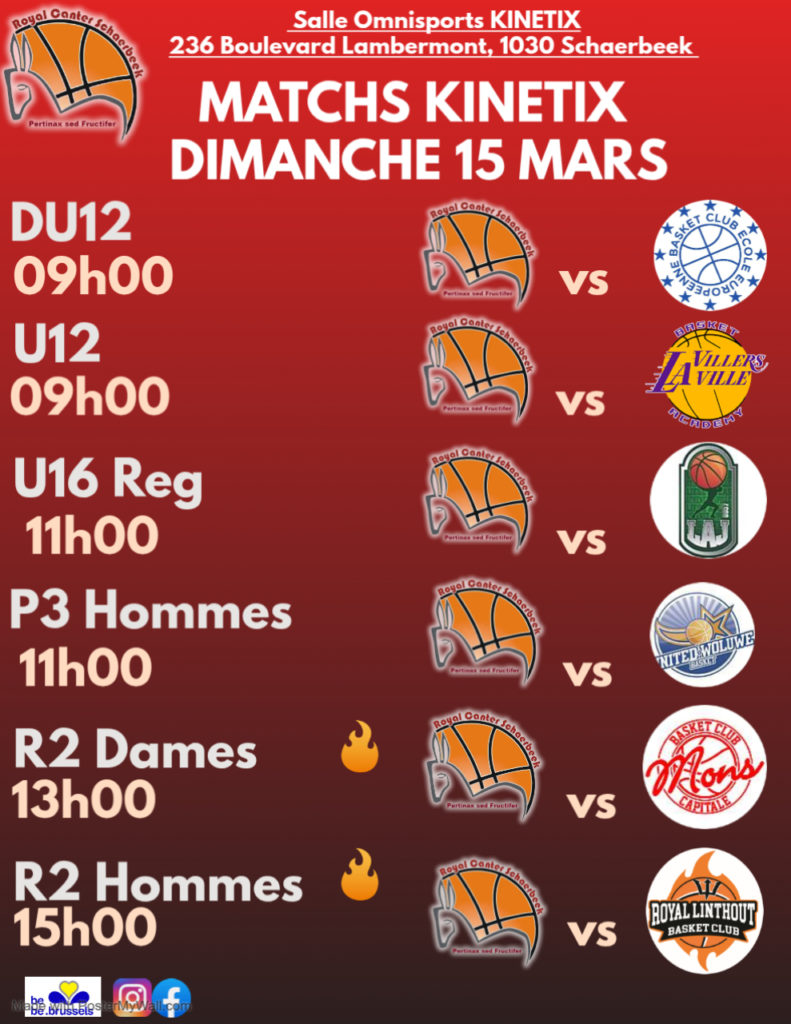 C'est pas moins de 15 Matchs qui vous attendent ce week end au Stadium Kinetix du Royal Canter Schaerbeek 📢📣 Des grosses affiches, des derbys, des matchs à enjeu, des doublés... Ca va être le Feu complet 🔥 Venez encourager nos équipes de tout âge de 10 ans à +45 ans 🤩